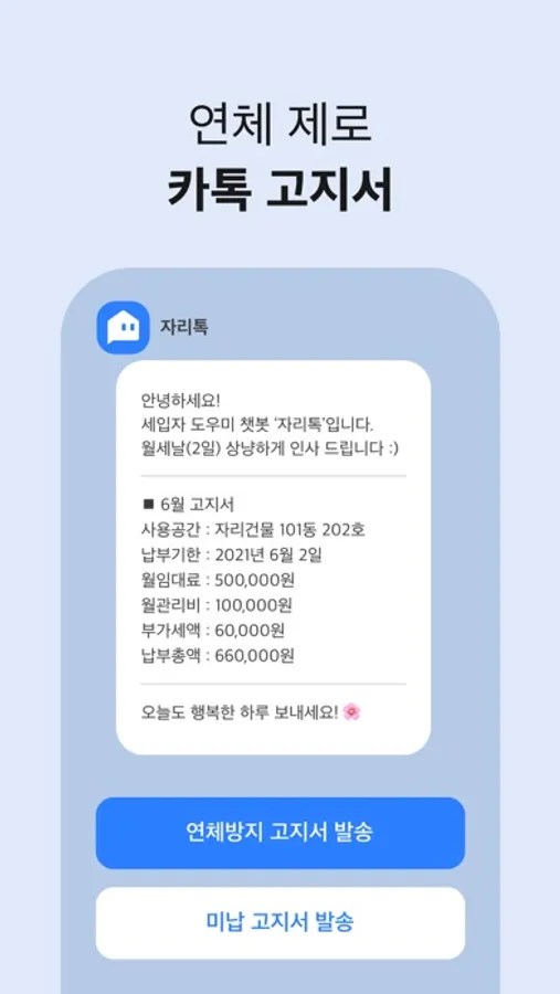 연체 걱정 제로! 고지서 발송으로 미납 90% 감소! 자리톡이 대신 발송해 부담이 없습니다. (선택 발송 가능)