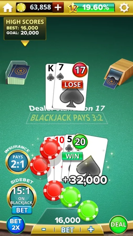 This free blackjack 21 game app is intended for adult audiences and does not offer real money gambling or any opportunities to win real money or prizes. Success within this free blackjack 21 game does not imply future success at real money gambling.