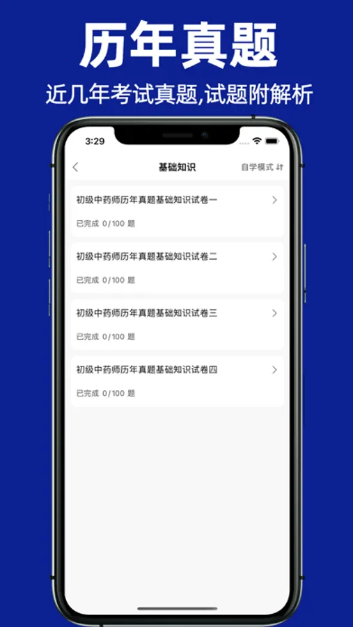 初级中药师考试题库分为不同题型,试题含:基础知识、相关专业知识、专业知识、专业实践能力,A1、B1型题,试题解析,随时随地刷题,初级中药师考试过关必备神器。