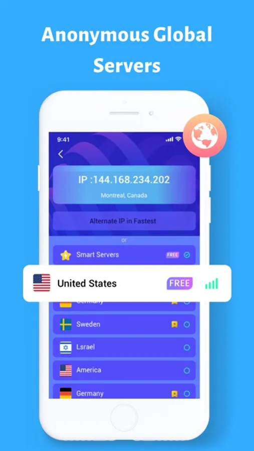 This super VPN has 3,000+ servers in 40+ countries. Connect to any server you want and hide your internet activity instantly. With the new search function, you can easily find and enjoy your favorite server.