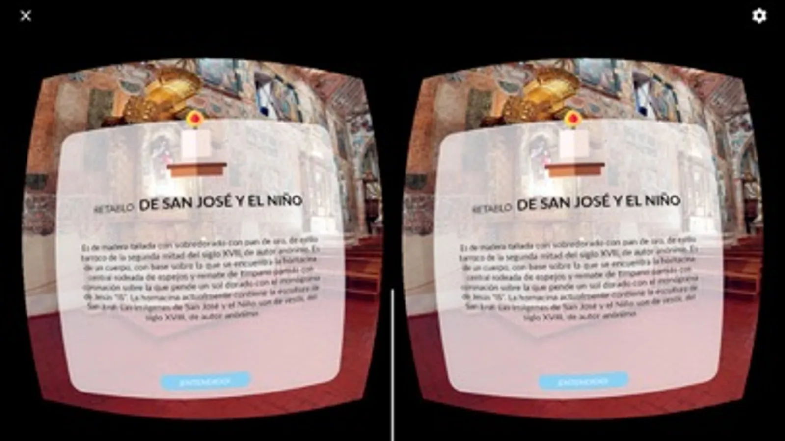 This app allows you to use a Cardboard and have an inmersive experience inside the churches of Huaro and Andahuaylillas.
