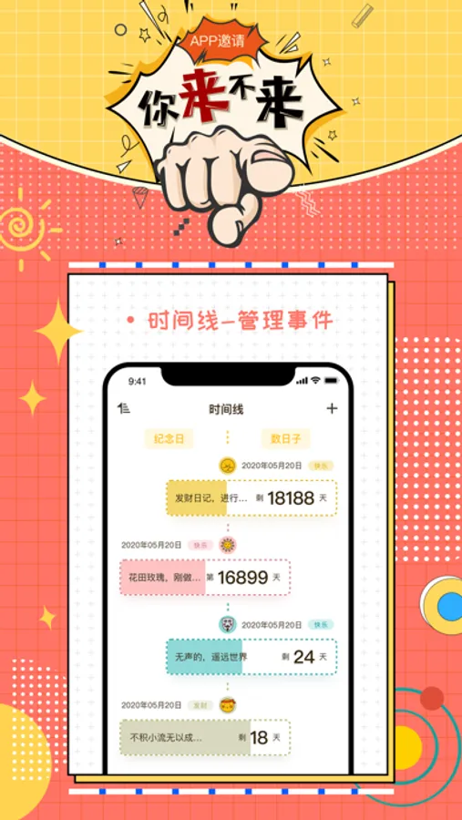 倒数时光是一款帮你记录生活工作中重要日子的小工具。桌面倒计时、发工资倒计时、信用卡还款倒计时、预产期倒计时、恋人纪念日倒计时、中高考倒计时......简约便捷的倒计时软件,帮助您轻松规划每一天、管理您的生活。提高工作效率、缓解记忆压力。