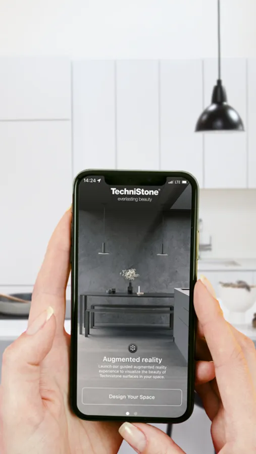 Explore Technistone designs in your space through Augmented Reality. The Technistone AR application allows you to see the beauty of quartz used for kitchen countertops, kitchen islands and bars, bathroom cladding and other applications.