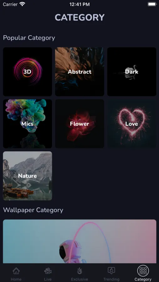 35+ Categories - With this app, you can explore wallpapers from 10+ different categories. This section has wallpaper
