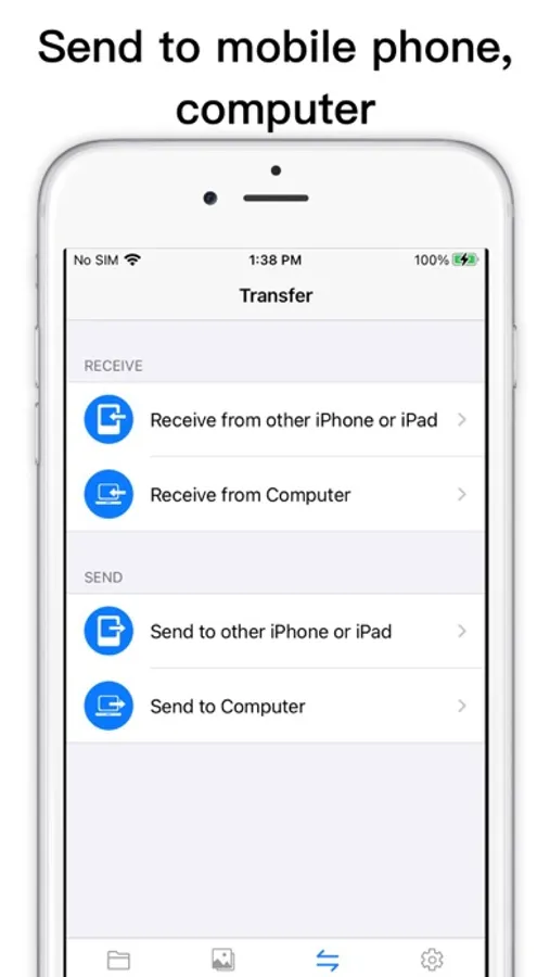 File Transfer, No need to connect to the Internet, you can send files, photos, videos, etc. between mobile phones and mobile phones and computers.