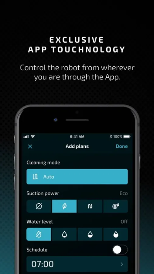 App compatible with the Conga 1990 and Conga Flash. You can connect and control the robot with your smartphone. You can select between its different cleaning modes, the suction power, the flow rate of the scrubbing mode, program it once or several times a day, check its status, the battery level and the cleaning history.
