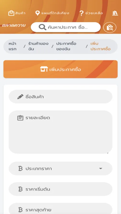 แอปพลิเคชันประกาศซื้อขายสินค้าจากฟาร์มควาย