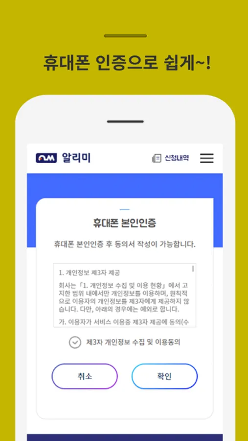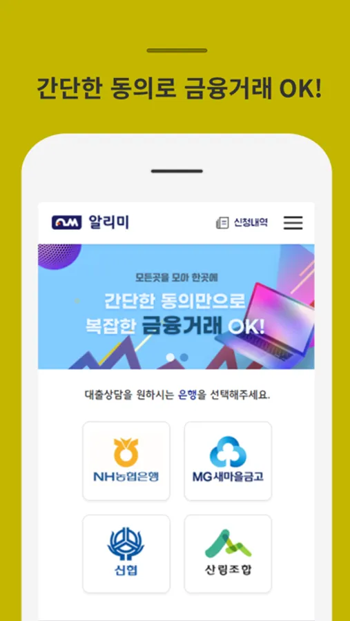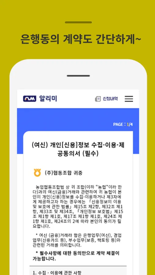 전국 2금융기관들의 금융동의서 제공, 작성 및 해당 금융사로 동의서를 발송하여 은행 방문 없이 금융 거래 가능여부를 확인 할 수 있게 하는 서비스 입니다.