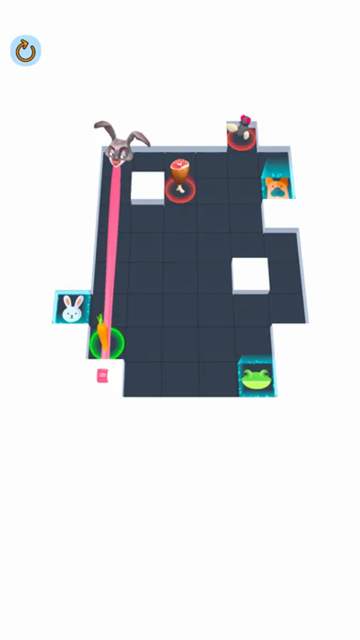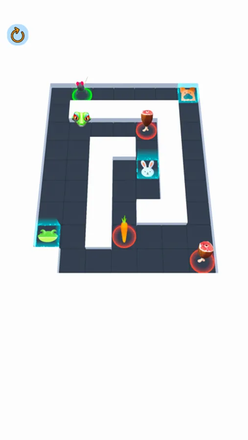 Move through the maze, transform your character by passing through the gates and eat the right food.