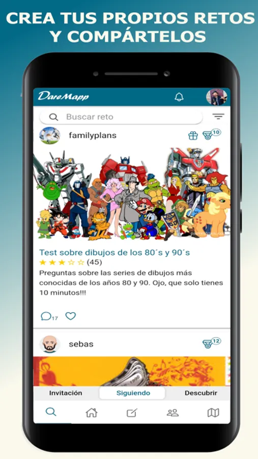 You can also create challenges to share them with your friends and, if you want, offer them a reward. You choose whether the challenge is public or private. You can accept challenges from other users of our community and win prizes while having fun.