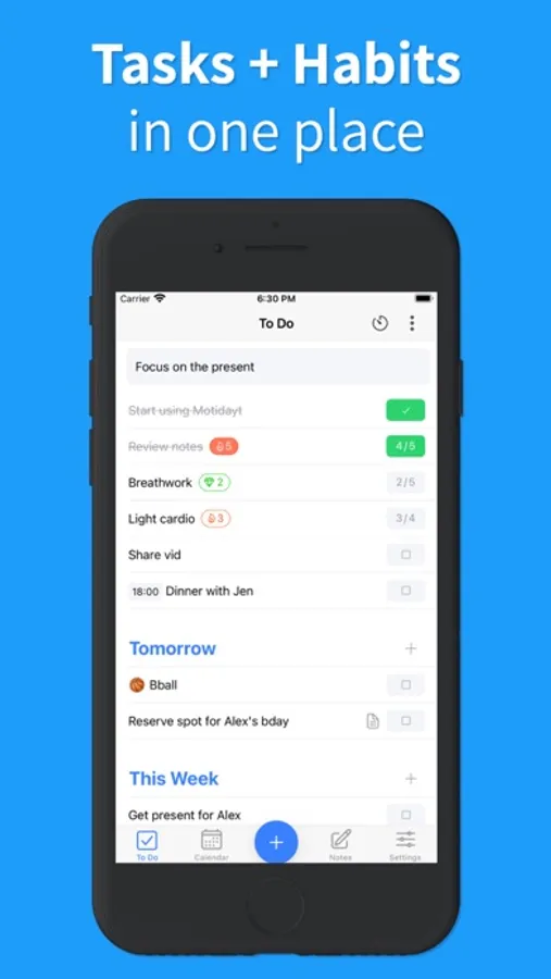 Motidayt is free with no strings attached and no limits - create all the habits, tasks, and notes you like!