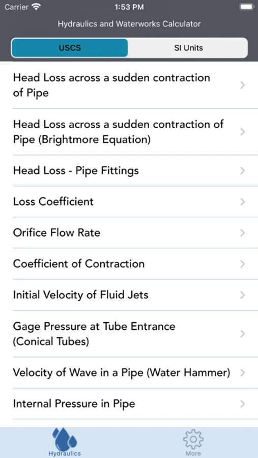 Hydraulics Calculator contains 94 Calculators and Converters, that can quickly and easily calculate and convert different Hydraulics, Water works and Civil Engineering parameters.