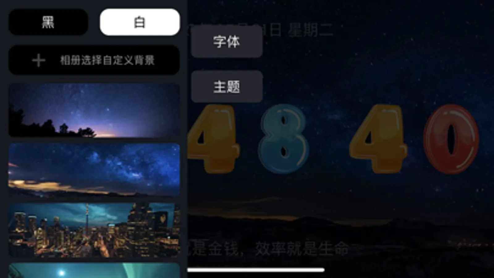 【海量創意主題】有超酷炫時鐘主題,極簡設計風格,如復古時鐘、電子時鐘、輝光管、fliqlo翻頁字體、炫彩時鐘、彩虹時鐘、極簡翻頁時鐘等樣式