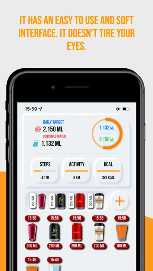 - It will track your daily water goal according to your water drinking activity and adapt to you by creating smart notifications.