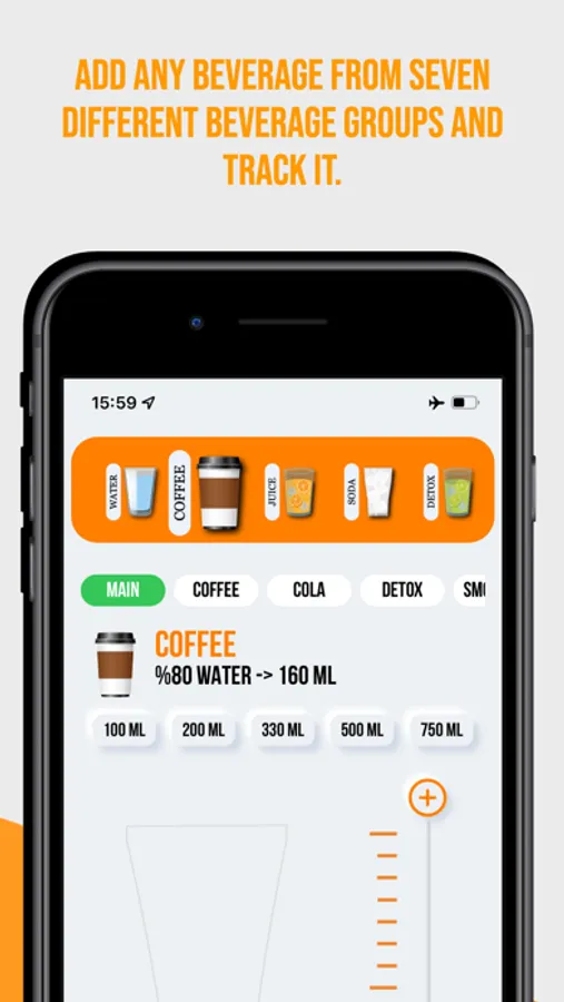 - Add and follow any beverage from 7 different beverage groups, not just water.