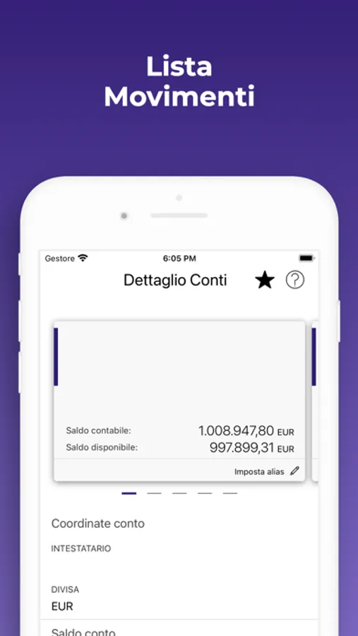 - Dashboard: puoi visualizzare i pannelli conti, carte, news e mercati, investimenti, finanziamenti, documenti, vincoli con vista di dettaglio su conti e depositi.
