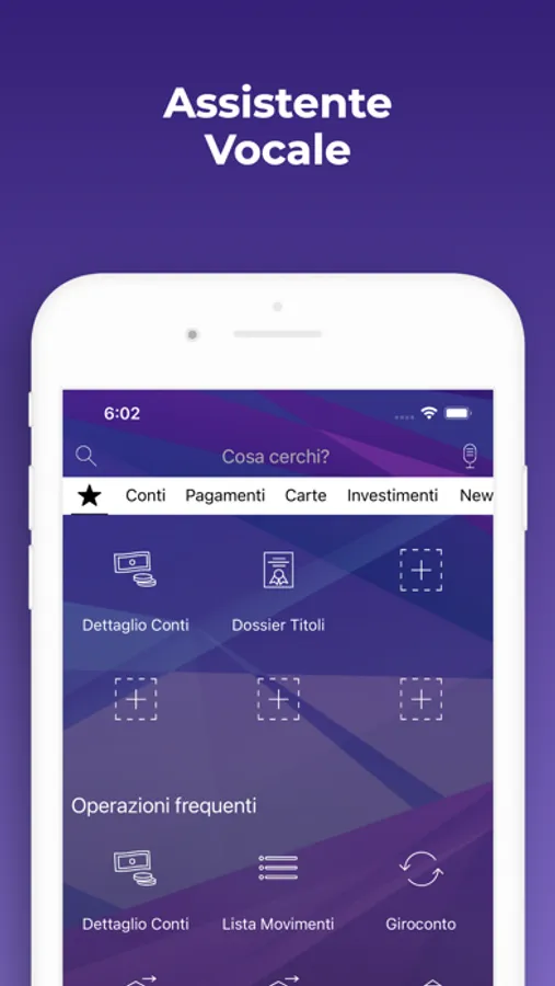 - Assistente vocale: utilizzo delle funzionalità di saldo, lista movimenti, documenti e bonifico tramite conversazione con l'applicazione.