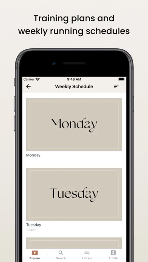 • Weekly workout and running schedule