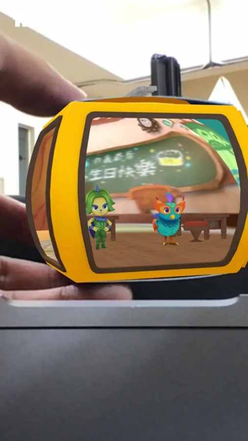 1.拍照模式:從妖果小學的角色中選一位,小妖即會以AR呈現於現實中,玩家可隨意360度轉動小妖進行互動,亦可合照留念,並將照片分享至社群平台。