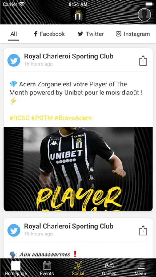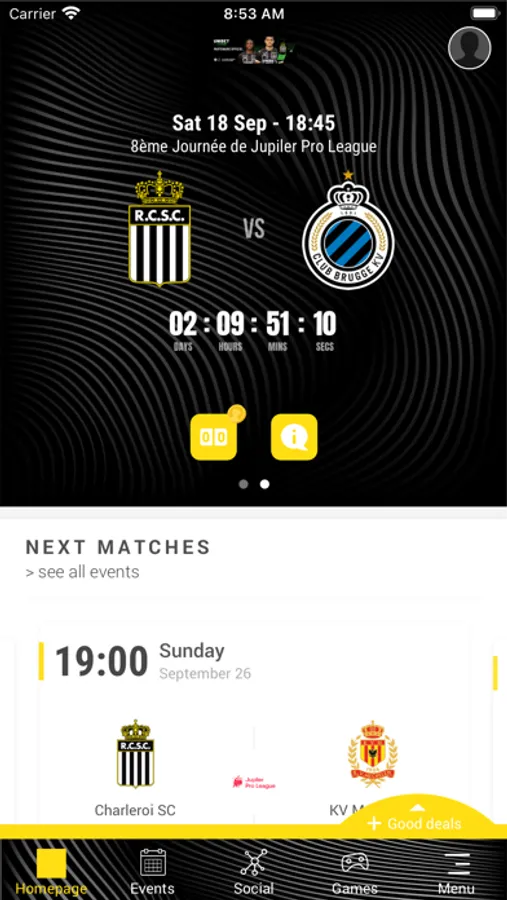 - Earn points by showing up at the stadium during the match days and by participating at quizzes, poll or predictions