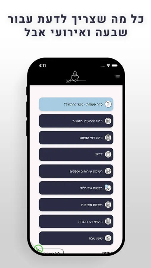 האפליקציה מנגישה מידע נרחב לקראת אירועי אבלים לרבות לוויה, שבעה, אזכרה ואירועי הנצחה נוספים. במקביל למידע, ניתן ליצור אירועים, להזמין משתתפים ועוד. האפליקציה מסייעת בארגון אירועי האבל ובנוסף, מאפשרת פתיחה והפצה של דפי הנצחה לנפטרים.
