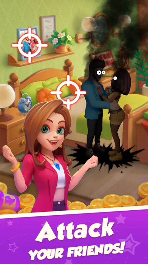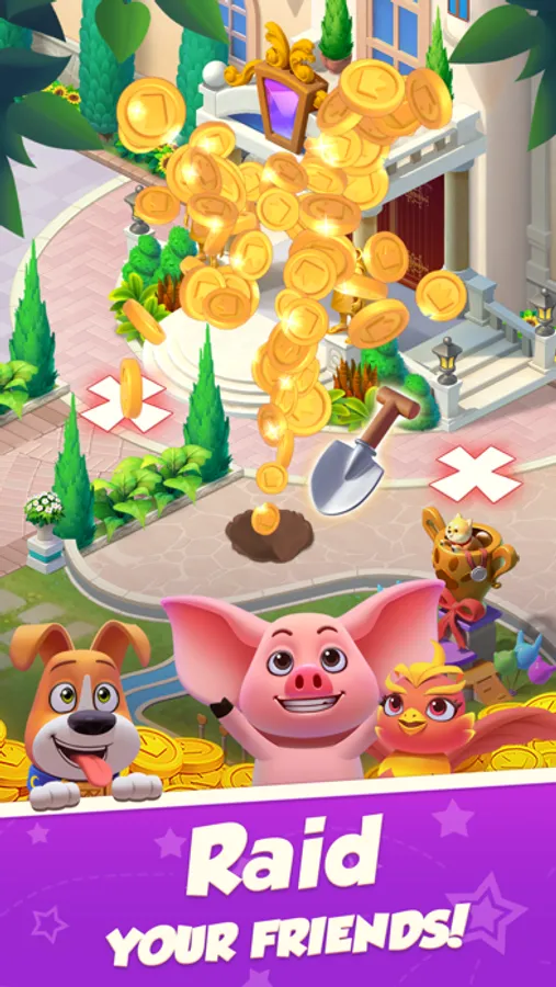 Use special slot spells to attack and steal to collect their coins. But beware of incoming attacks, spin to earn Shields and protect your coins.