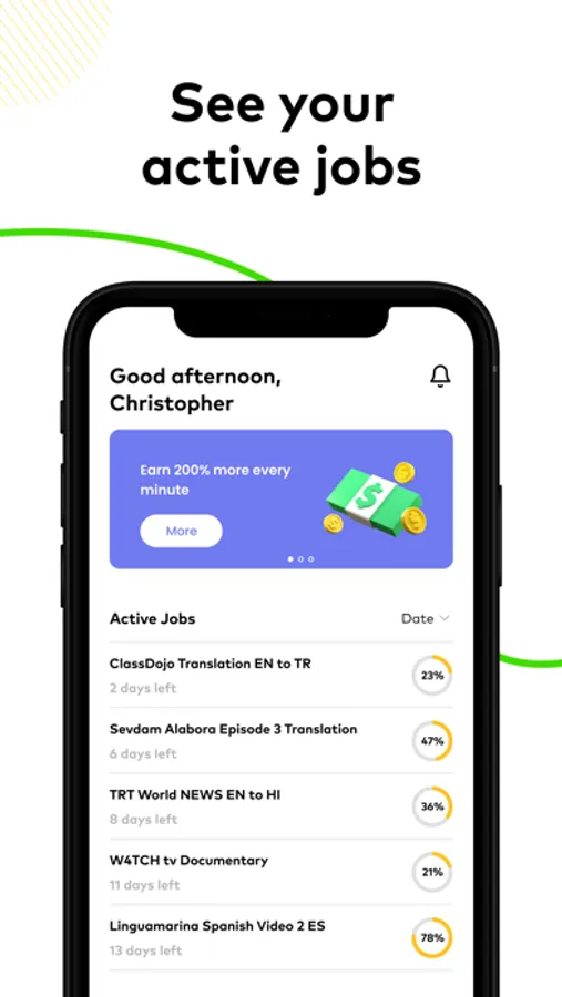 Ollang provides a mobile application for translators in order to enhance their performance. Through the application, the translator will be able to schedule its availability, be assigned jobs and view their profile (personal details, performance score and settings).