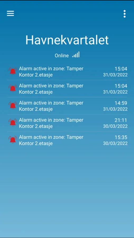 - Se status på alarmsendere som er satt i drift og tilhører deg