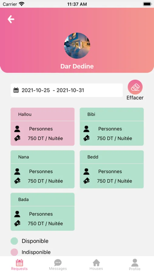 - Voir les disponibilités à certaines dates
