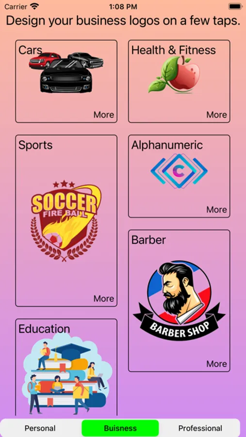 ►► 1000+ logo templates designed by professionals: What makes this graphic design creator app stand out in the competition, is the variety of available templates which are made by professional designers. All the templates have been crafted with high precision, and you can find the logos in 13 different categories, including the following: