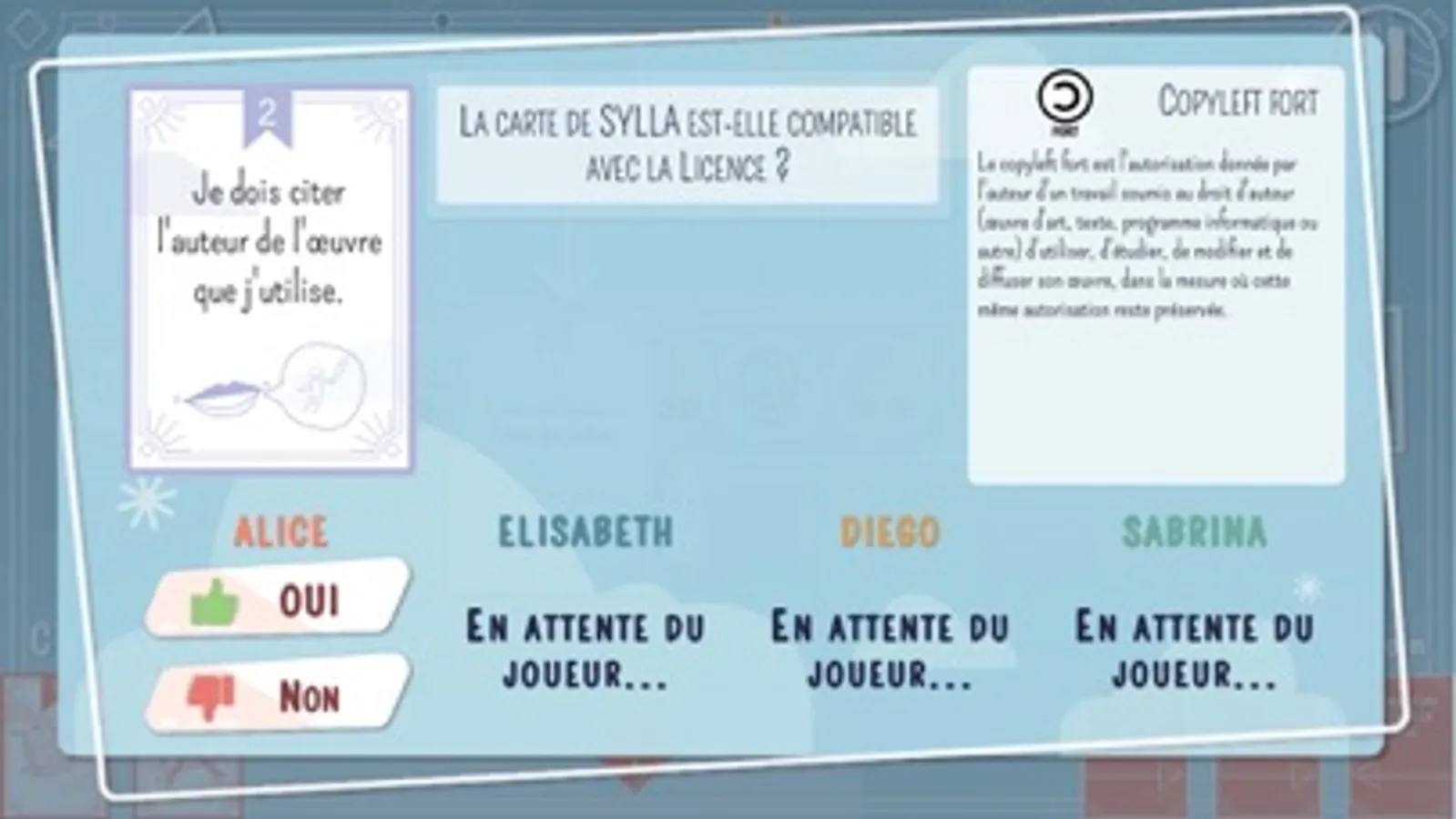 Avec Partyright, manipulez ces différentes licences sur le plateau de jeu et utilisez-les plus vite que vos adversaires pour gagner la manche ! Jouez en solo ou à plusieurs... et maîtrisez le droit d’auteur !