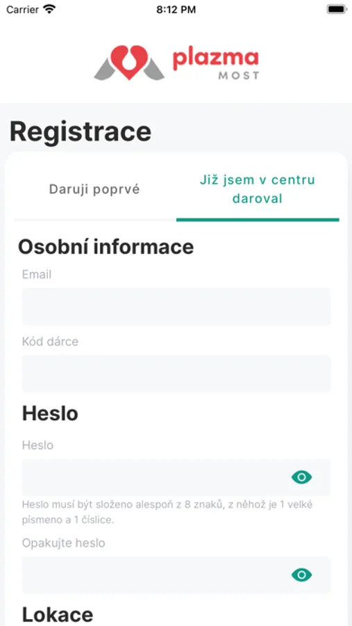 Aplikace slouží k registrování uživatele do plazma centra a následně jeho objednání na určitý den a čas.