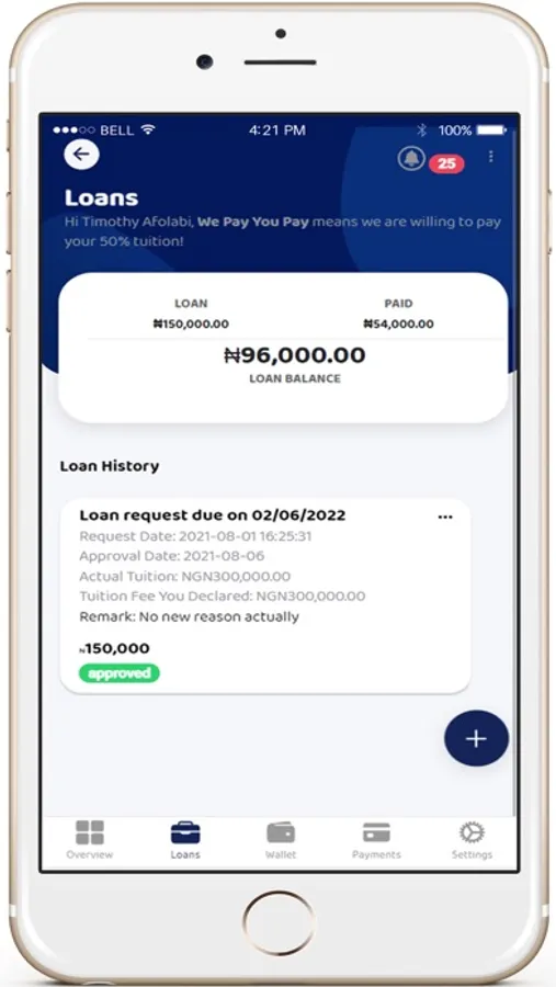 Access up to 50% of your tuition as student loan from us and simply contribute the other 50% with our flexible savings plan.