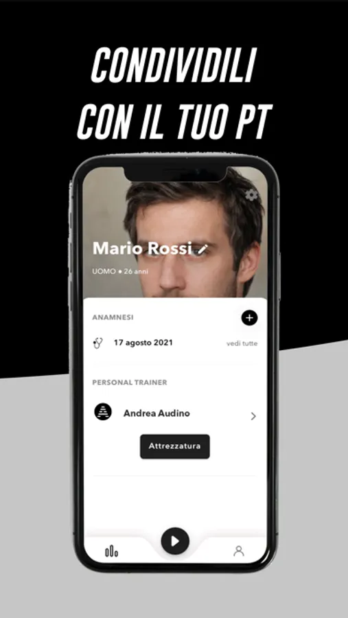 Benvenuto in Audino Lab: grazie alla mia app potrai accedere in ogni momento alle tue schede di allenamento, monitorare i progressi e condividerli con me, tutto in un’unica app!
