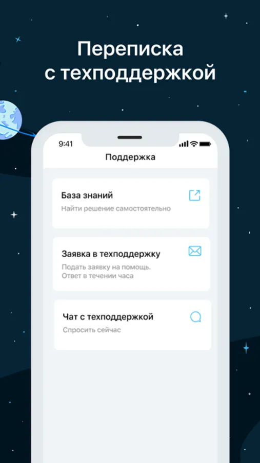 • круглосуточная техническая поддержка — создание и просмотр авторизованных заявок, а также чат с техническими специалистами.