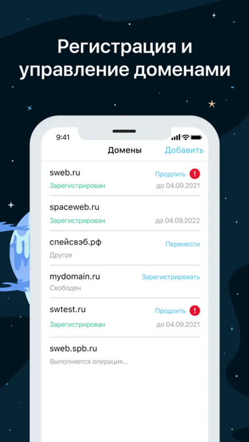 Управление хостингом и доменами с мобильного устройства.