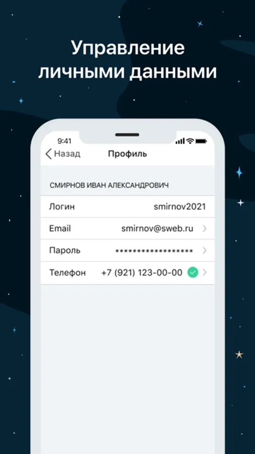• управление аккаунтом — изменение контактного email, номера телефона и пароля, ввод и изменение реквизитов, управление подписками и push-уведомлениями, смена тарифа