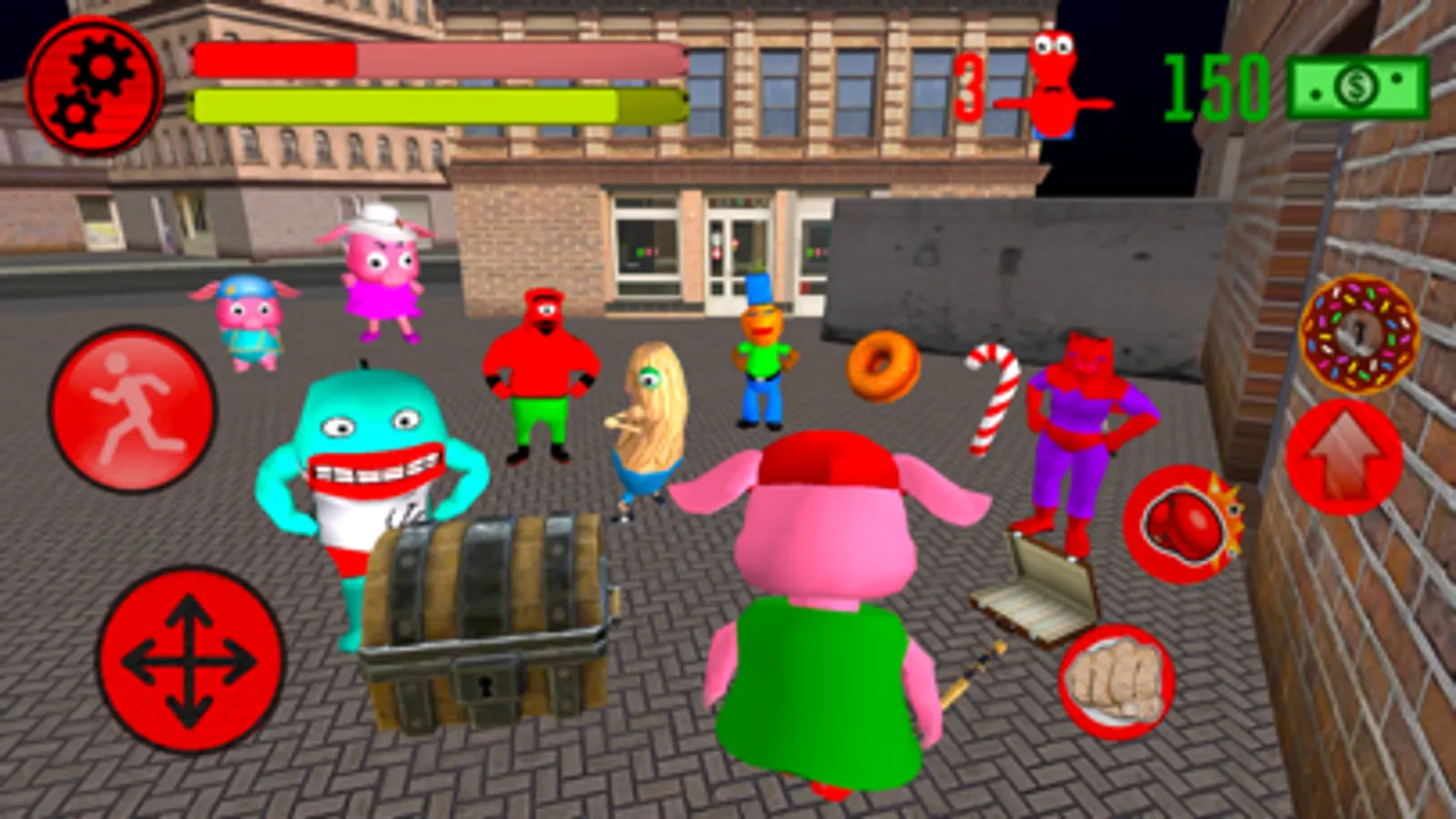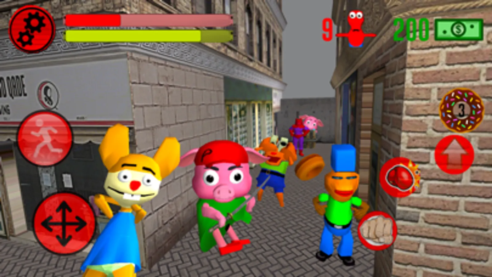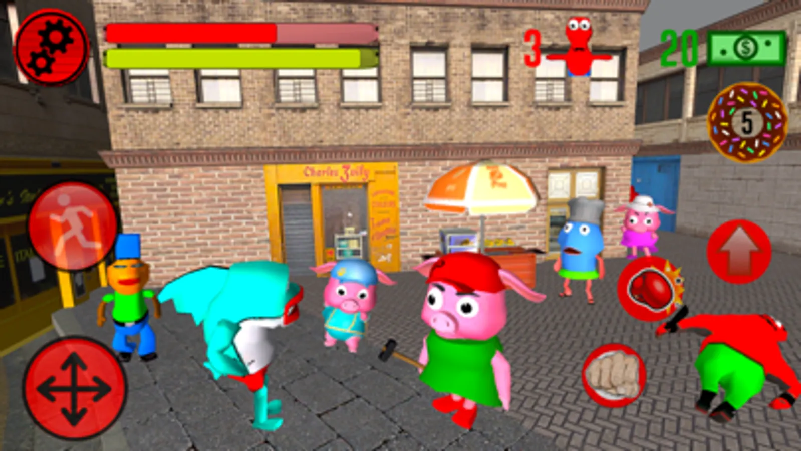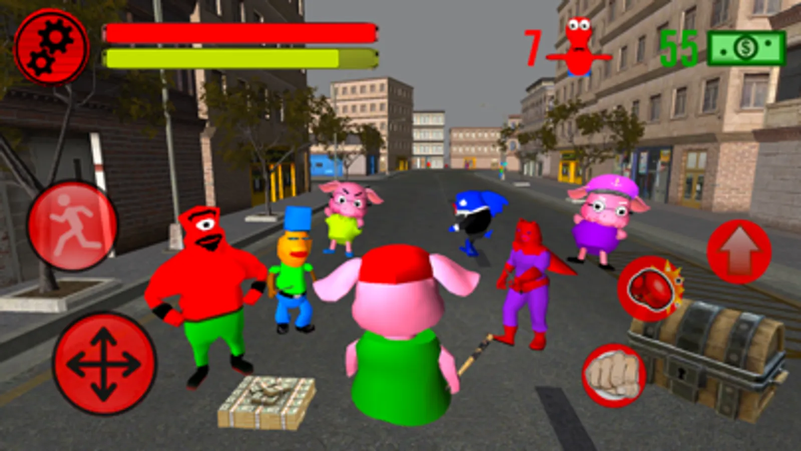 Welcome to the Huge City! You play for a piggy! Meet your favorite enemies, family and friends!