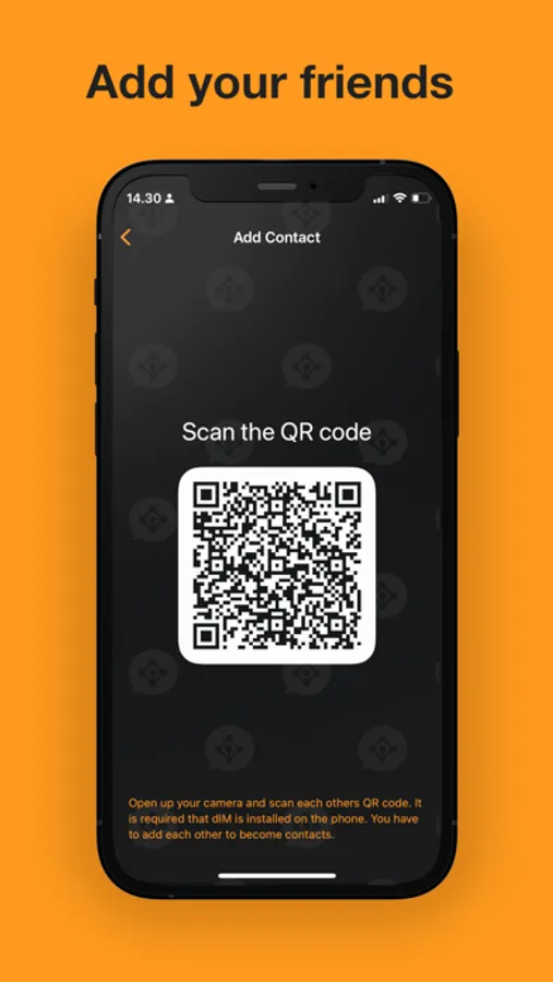 * Add contacts by scanning their QR code.