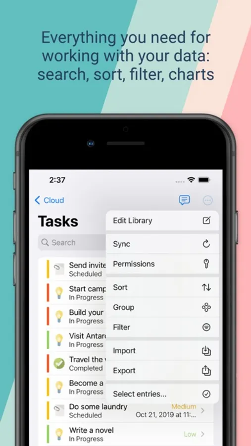 Memento Database is a powerful and user-friendly tool designed for working with any data, making it possible to store, organize, calculate and visualize information. It is more convenient than spreadsheets, more flexible than specialized applications.