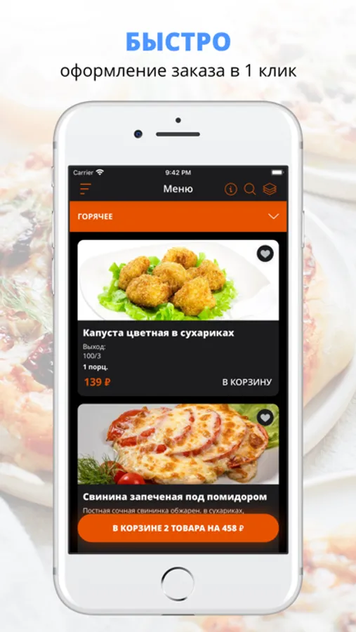 Установите наше приложение, выберите любое блюдо из нашего меню и оформите заказ онлайн всего в пару кликов!