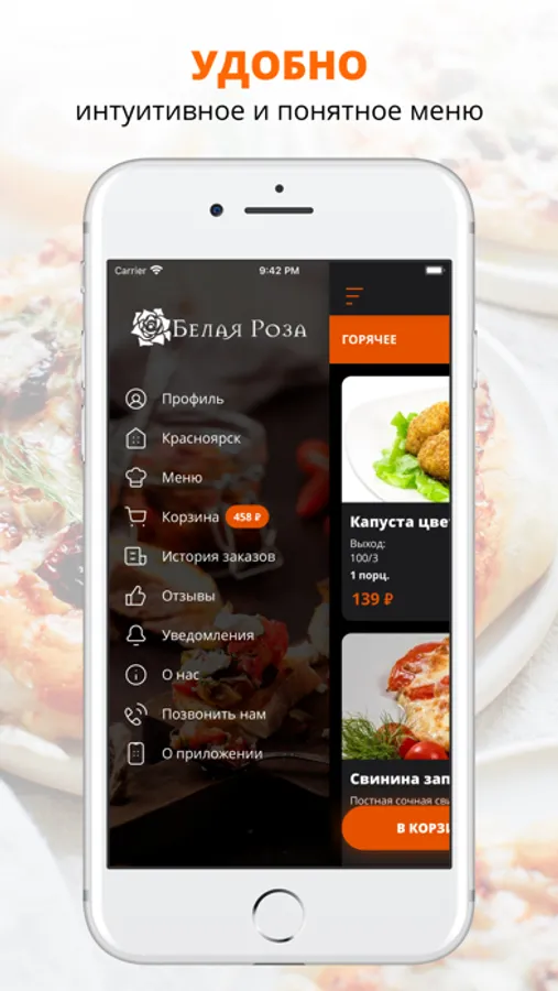 Воспользуйтесь удобным приложением для заказа еды из кафе «Белая роза». Мы готовим оригинальные блюда из качественных ингредиентов и доставляем готовую еду в любую точку города Красноярск!