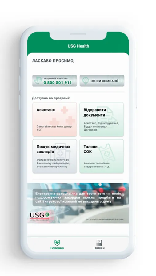 Клієнти страхової компанії «УСГ» з добровільного медичного страхування у мобільному додатку можуть: