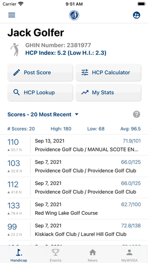 - Post & View Scores – requires a Handicap Index issued by the West Virginia Golf Association
