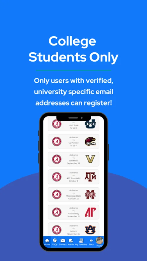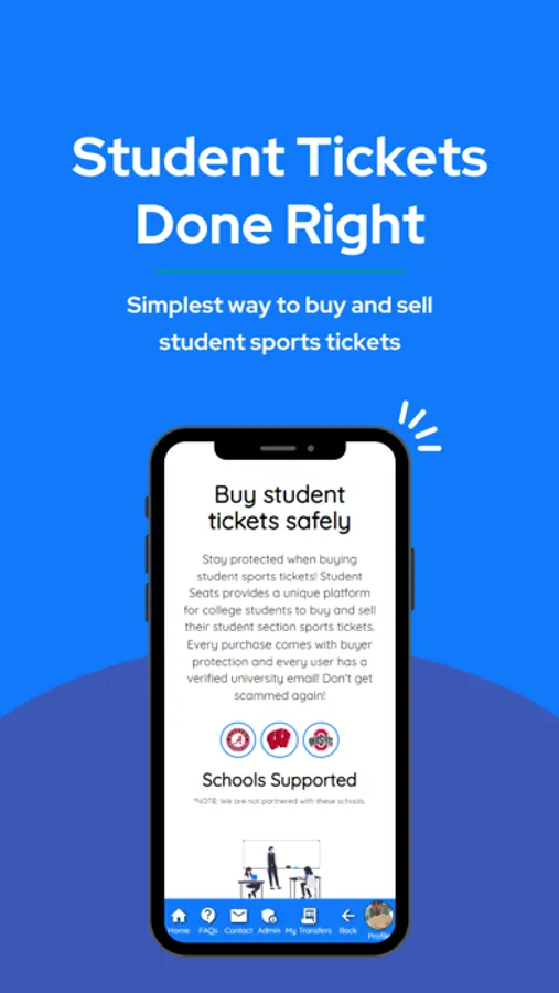 Student Seats provides an online ticket exchange designed for college students to trade their sports tickets. Users must verify their university emails before being allowed to use the app. Users are also protected through the Student Seats escrow transaction partner service, Trustap.