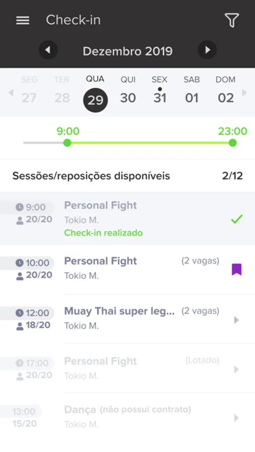 - Realizar check-in nas aulas