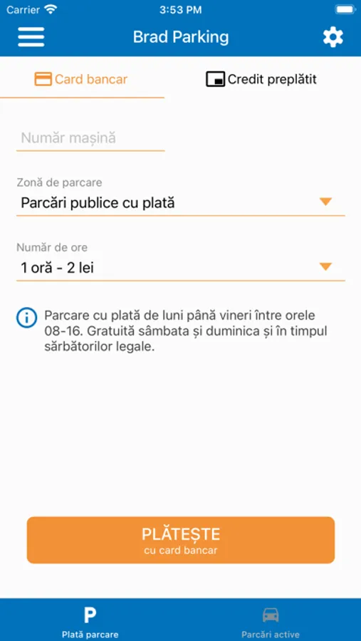 Prin intermediul aplicației puteți achita taxele de parcare pentru parcările publice cu plată din Municipiul Brad.
