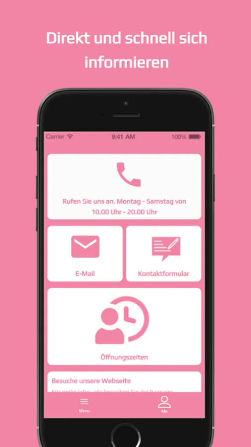 Mit dieser App können Sie direkt einen Termin buchen. Desweiteren sind weitere Infos direkt über die App möglich, wie: E-Mail schreiben, Öffnungszeiten abrufen. Mit Klick auf Webseite besuchen erhalten Sie weiteres Infos.