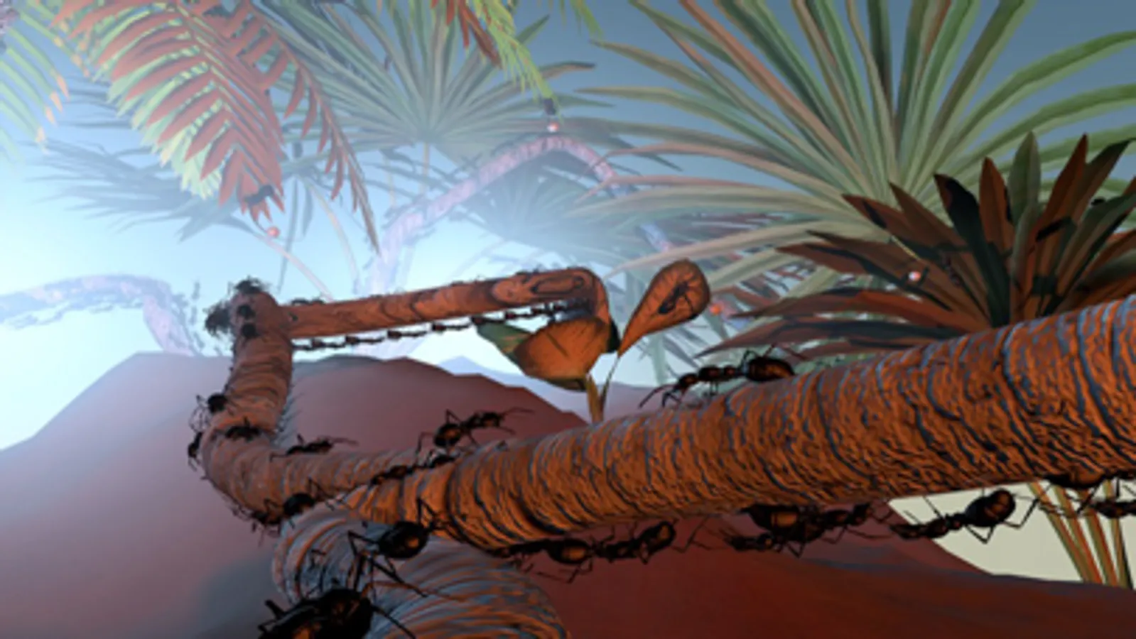 Visitor's step into the sculpture and are transformed, through augmented reality, into an ant, living peacefully beneath the forest canopy. They are soon attacked by a simulated fungus, which turns them into “zombie” ants. They spread the fungus to other ants, extending the life of the fungus.