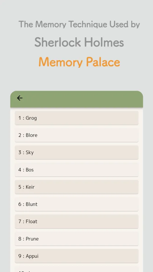 Palace Walk allows you to practice memory techniques known as the Memory Palace, Mind Palace, Method of loci, or Journey Method.